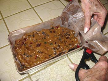 Spoon the batter into loaf pans lined with greased paper.