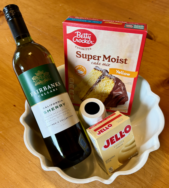 Made with yellow cake mix, instant vanilla pudding, and a generous splash of sherry, this cake is incredibly easy to prepare. The texture is soft and velvety, with a golden crust. Finished with a dollop of whipped cream or light dusting of powdered sugar, this nostalgic dessert has been beloved for generations in our family.