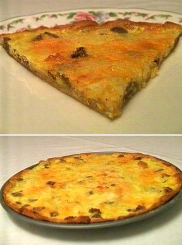 In a bowl beat eggs and milk, add salt and pepper. Pour egg mixture on top of crust. Sprinkle with Parmesan cheese. Bake at 375° 25 to 30 minutes.
