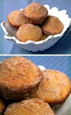 Remove from oven and immediately roll puffs in six tablespoons melted butter then into a mixture of 1/2 cup sugar and 1 teaspoon cinnamon. Serve warm or cold.