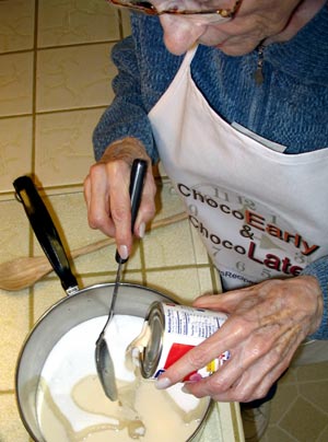 2 Mix 1 can (12 ounces) of evaporated milk into 4 1/2 cups of sugar. Stir thoroughly. |