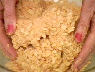 Step 2 Add Rice Crispies and continue mixing by hand. |