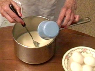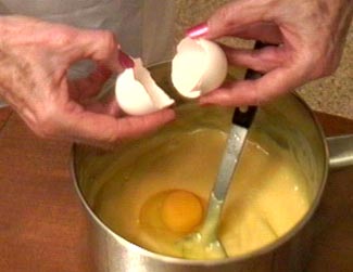 Look for complete recipe ingredients on my Other Desserts page. Step 1 Add flour to water and butter mixture. |