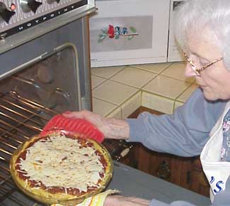 Return pie to the oven for 5 more minutes. Notice that the hot pie has already begun melting the cheese.